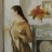 A gentle, meditative portrait (close to how Carol used to look in younger days) of a brown-haired, French-braided woman looking out of a bright morning window (presumably at her garden), dressed in a yellow morning gown. In the foreground two teacups balance precariously on a table, behind which is a bookshelf with a heart pillow (hearts being Carol Worthey's symbol of choice) and a flower pot. The outline of the face is barely visible but still "there" in the morning sunshine. There is a taste of Vermeer (Carol's second favorite artist, after Claude Monet) in the pose and positioning near a window. This watercolor was done while studying with well-known artist Susan Warshaw .