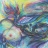 This painting has been directly inspired by a piece of music composed by Carol Worthey, An Iridescent Splash in Liquid Time for Flute, Viola and Harp, premiered by The Debussy Trio in October 2005. The melodic theme of the piece actually is painted to the right of the mermaid, as if the magical creature were stroking her shell harp and the melody were floating out into the surrounding waters. Iridescent touches of silver, copper and gold on the mermaid's tail and hair were actually painted live on stage while Carol was being video'd. This daring new performance art (painters have often painted while music played, but never live before an audience to their own created music) was world-premiered by Carol on January 11th, 2006 at the Off The Cuff show put on by Renaissance Speakers Toastmasters Club at Celebrity Centre International's Garden Pavilion in Hollywood.