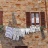 It's laundry day in Tuscany! The freshness of newly washed laundry contrasts with the old wall behind. You can practically feel the breeze as it makes the wash billow on the clothesline. The socks are brilliantly white in the late morning sun, while intriguing shadows (typical of the Tuscany region) reveal the outline of three poplars and cast a fascinating interplay of light and shade on the laundry and the old bricks and stone of the wall. Remnants of an ancient arch still remain on the wall as witnesses to earlier times. Lace curtains in the window shimmer crisply in the mix of sunlight and shade while the shutters of the opposite window are almost closed. Two hanging plants with hot pink flowers lend contrast to the scene and cast variegated plays of light and shade on the wall. A mysterious old doorway below is open and dark, both beckoning and forbidding at the same time. (Perhaps the two windows and the door suggest a face with one eye open, the other shut and a mouth below ready to speak of times long gone and fresh new days.) Carol has sought to bring this vivid scene to life with attention to each and every detail, with many overlays of varied color washes and with a passionate interest in creating texture, design and movement. The wash has been done early--now it's time to enjoy some wine and pasta in the garden! Ah, life in Tuscany!